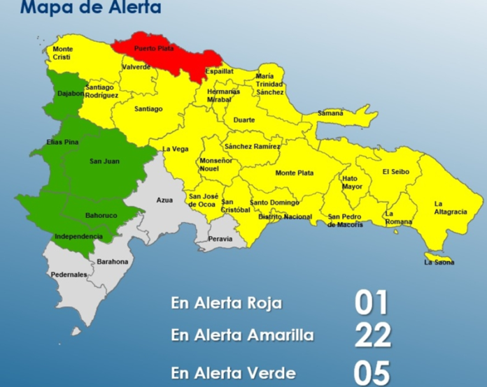 Mientras que en alerta verde permanecerán Bahoruco, San Juan, Elías Piña, Dajabón e Independencia.