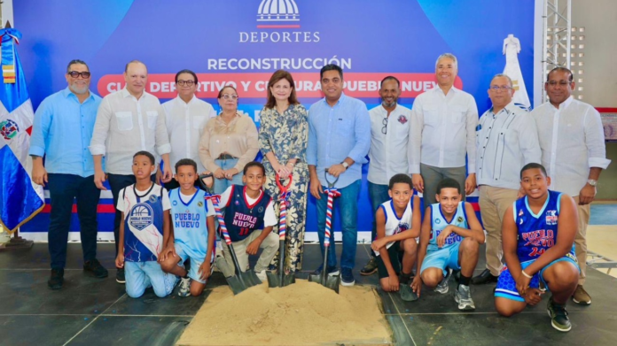 Santiago, RD. – La vicepresidenta de la República, Raquel Peña, junto al ministro de Deportes, Kelvin Cruz, encabezó este 20 de abril el acto de inicio de los trabajos de reconstrucción del Club Deportivo y Cultural Pueblo Nuevo, en Santiago, una obra orientada a impulsar la práctica deportiva y el desarrollo social en la comunidad.